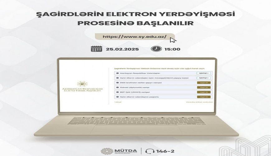 25 fevral saat 15:00-dan etibarən 2024-2025-ci tədris ilinin II yarımili üzrə şagirdlərin elektron yerdəyişməsi prosesi aktiv olacaq.