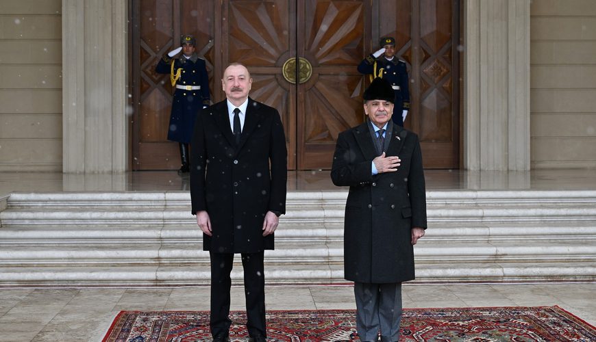 Azərbaycan Prezidenti İlham Əliyev Pakistanın Baş naziri Məhəmməd Şahbaz Şərifi qarşılayıb.