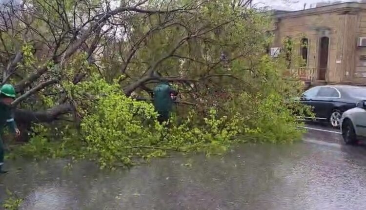 Bakı ərazisində əsən güclü külək səbəbindən ağac aşıb.