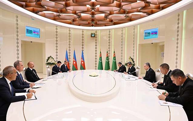 Türkmənbaşı şəhərində Azərbaycan Prezidenti İlham Əliyevin Türkmənistan Xalq Məsləhətinin sədri Qurbanqulu Berdiməhəmmədovla geniş tərkibdə görüşür.