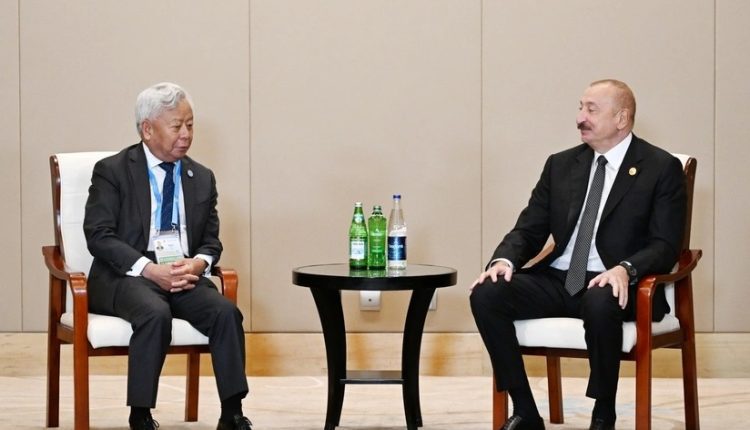 Azərbaycan Respublikasının Prezidenti İlham Əliyev sentyabrın 1-də Çinin Tiencin şəhərində Asiya İnfrastruktur İnvestisiya Bankının prezidenti Cin Liqun ilə görüşüb.